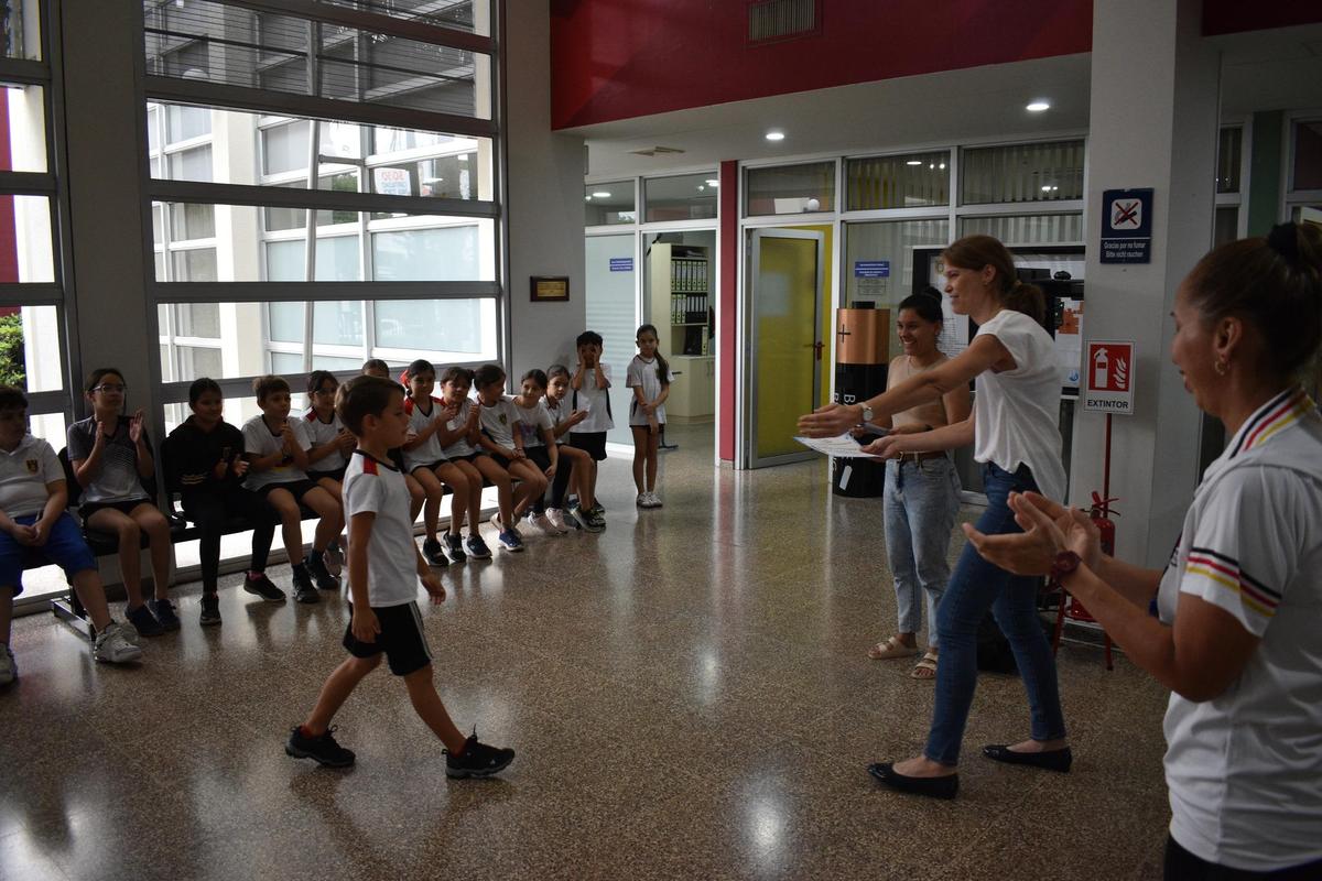 Am Montag, dem 6. Oktober, fand ein kleiner Akt der Anerkennung statt, bei dem die Leiterin der Grundschule, Frau Anne Chrost, jedem Teilnehmer ein Ehrendiplom überreichte.