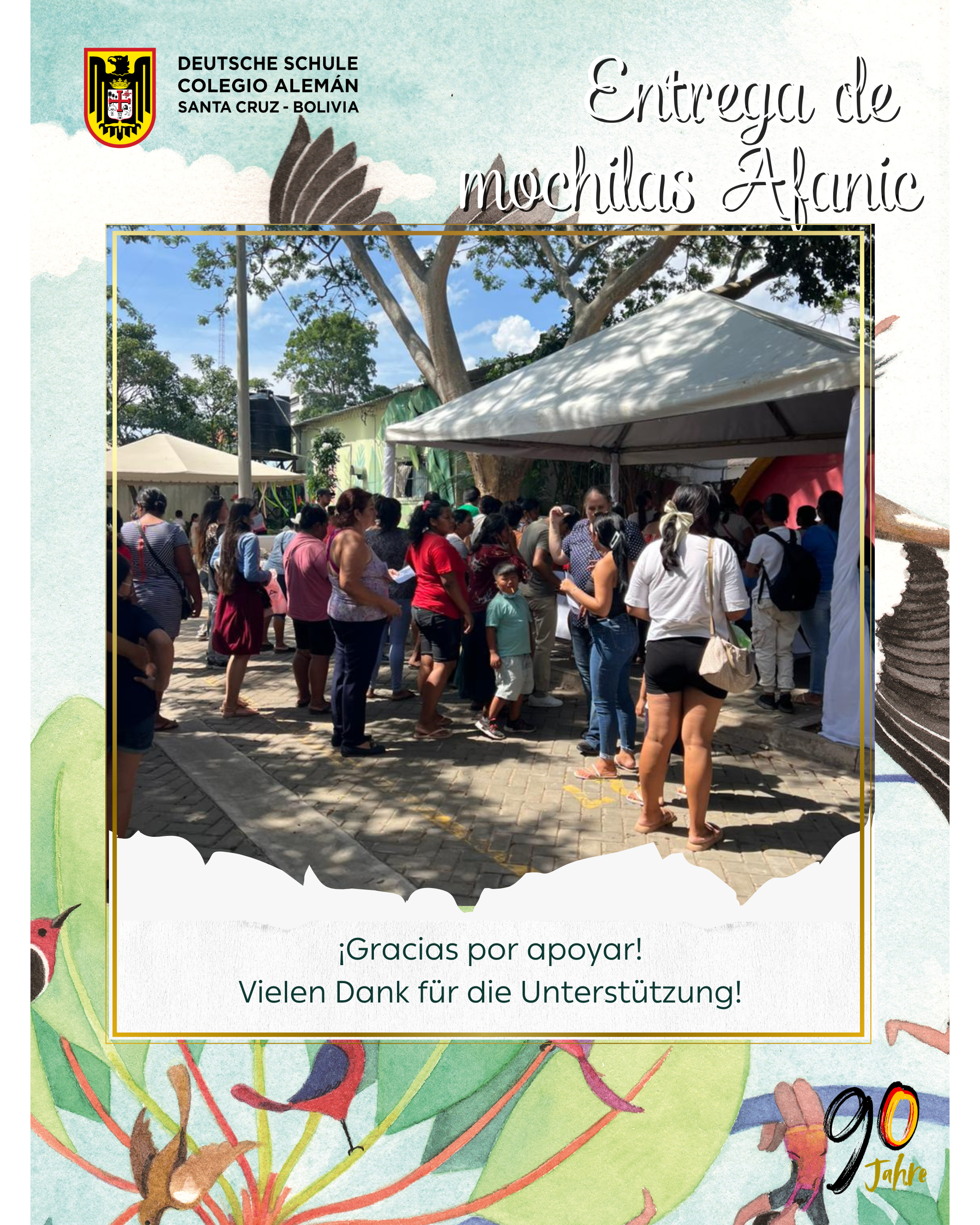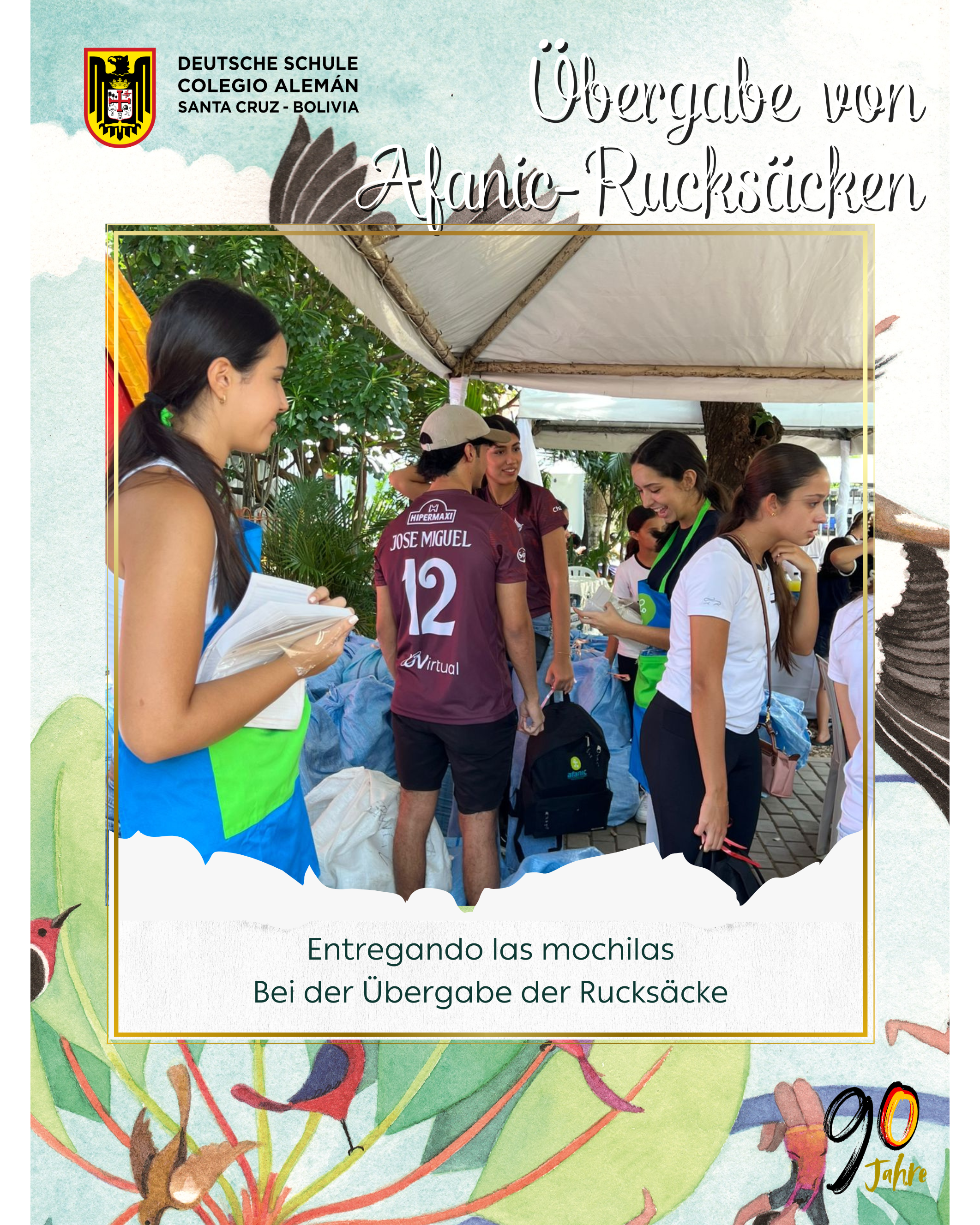 Übergabe der AFANIC-Rucksäcke Mit dabei waren Tamara Anglarill, José Miguel Méndez, Rafaella Parejas und Sol Méndez. Wir danken ihnen für ihre freiwillige Unterstützung! Publicado Febrero 20, 2026 Vista para Imprimir