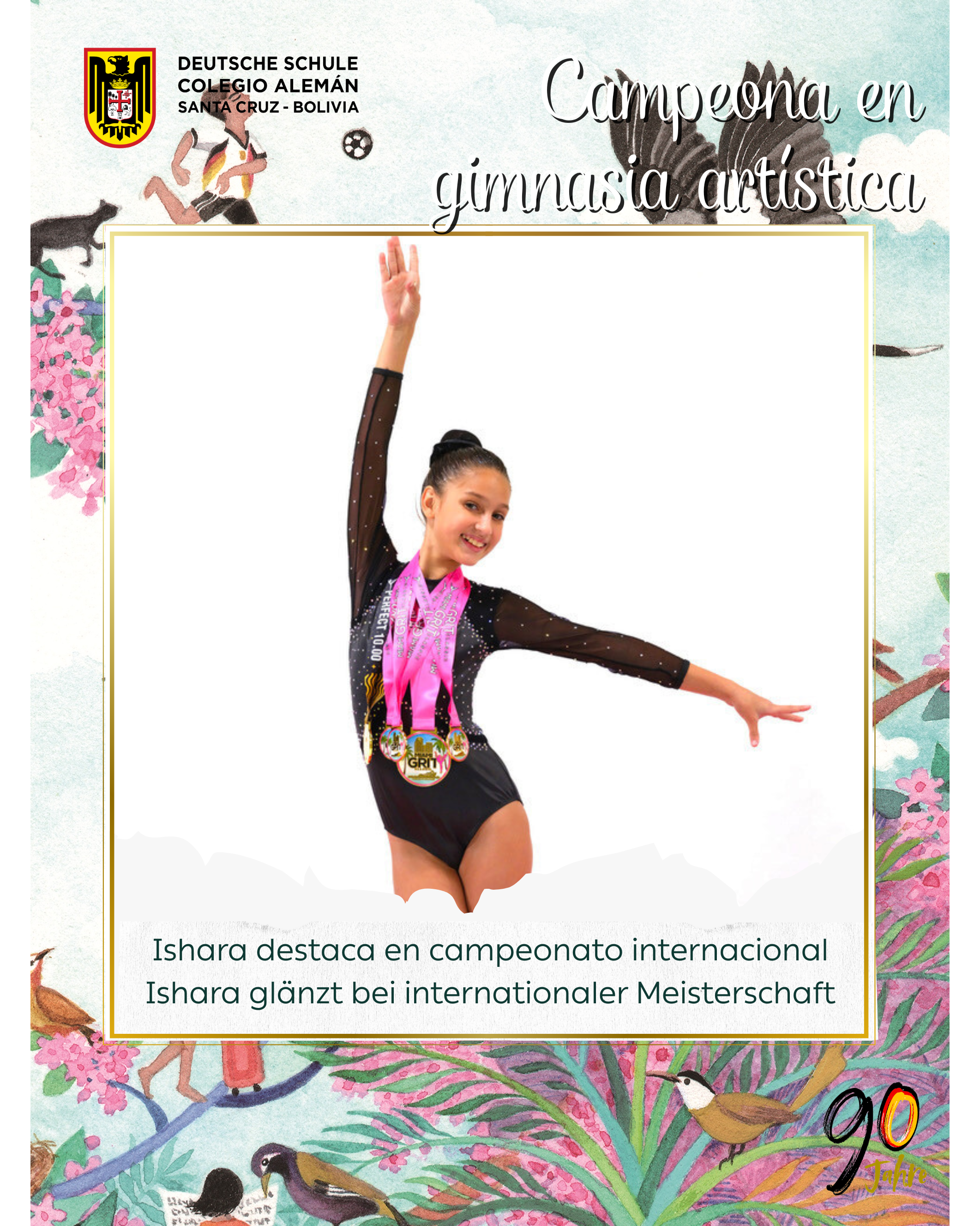 Meisterin im Turnen Ihre Erfolge bei diesem Turnier waren: - Erster Platz im Sprung (Gold) mit einer perfekten 10. - Erster Platz im Mehrkampf (Gold) - Erster Platz am Stufenbarren (Gold) - Dritter Platz am Boden (Bronze) Herzlichen Glückwunsch, Ishara! Publicado Marzo 2, 2026 Vista para Imprimir
